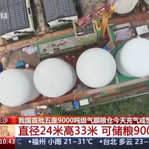 总台央视记者 古峻岭:这里是中储粮长沙直属库。在我身后,第5座气膜仓刚刚充气成型。像这样的一个高大仓体,最快仅需20多分钟便可以充气成型。它们看起来白白胖胖、很萌的样子,但本领可真不一般。