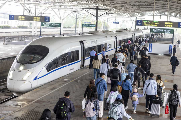 各地迎来“五一”小长假返程高峰 滚动播报 2025.05.05 17:37 转自:经济日报 5月5日,旅客在江苏泰州站乘车出行。当日是“五一”小长假最后一天,全国各地铁路、公路迎来返程客流高峰。汤德宏摄(中经视觉)