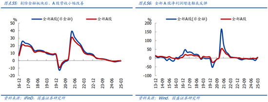 稳增长政策推动下,2025年Q1全部A股业绩企稳回升,净利润增速触底反弹,剔除金融板块后营收增速也小幅改善。营收方面,2025年Q1全部A股营收同比-0.37%,较2024年年底回落0.1个百分点;剔除金融板块后,2025年Q1全部A股归母净利润同比-0.46%,较2024年年底抬升0.6个百分点。利润方面,2025年Q1全部A股归母净利润同比3.47%,较2024年年底抬升6.4个百分点;剔除金融板块后,2025年Q1全部A股归母净利润同比4.17%,较2024年年底抬升17.2个百分点。