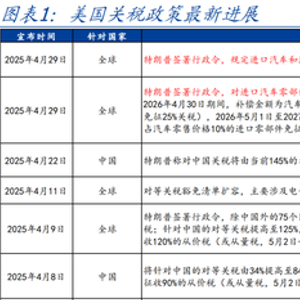 1.近期中美谈判出现积极信号;美国对汽车零部件新增两类关税抵免,对华“低值包裹关税豁免”正式取消。