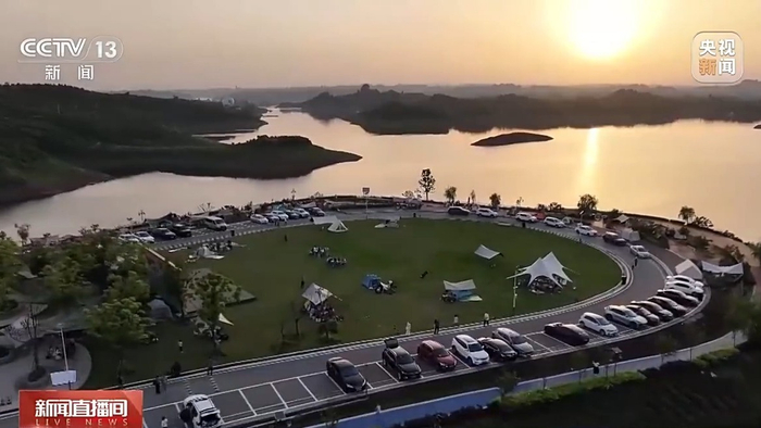 “五一”假期,在重庆市长寿区,不少游客走进大自然,到近郊体验露营的乐趣,享受惬意时光。