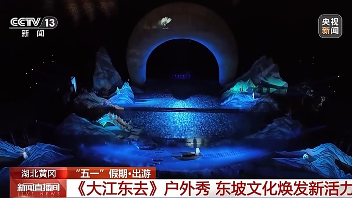 在湖北黄冈,音乐剧《大江东去》户外版激情上演。夜幕降临,明月高悬,古琴声如泉水叮咚,电子鼓点如雷霆轰鸣,观众在这里与历史对话,感受苏东坡在黄州的跌宕人生,体验“江山如画”的美妙。