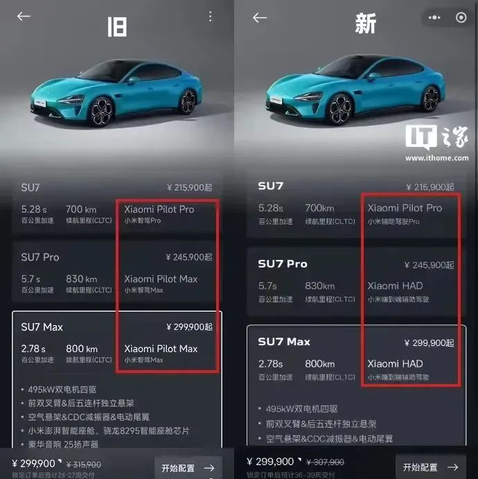 其中,小米SU7标准版搭载的Xiaomi Pilot Pro,改名为“小米辅助驾驶Pro”,此前为“小米智驾Pro”而小米SU7 Pro、小米SU7 Max搭载的Xiaomi HAD,改名为“小米端到端辅助驾驶”,此前为“小米智驾Max”。