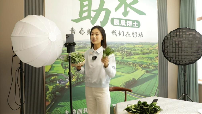 在山东省淄博市的高青农产品物流集散交易中心,市场部负责人杨晨正在熟练地用中、英双语介绍家乡特产。这名26岁的艺术学博士在读生去年创建“晨晨助农直播间”,通过“短视频+直播”形式,讲述每株菠菜背后凝结的汗水,首场直播观看人次过万。