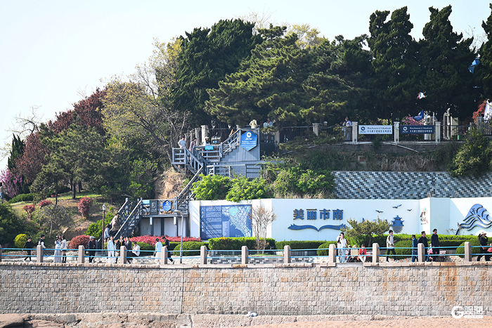 站在楼梯上,一整片碧蓝海域毫无保留地铺展在眼前,远处,海天相接,澄澈的蓝天与湛蓝的大海融为一体;近处,海浪有节奏地拍打着岸边的礁石,溅起洁白的浪花 ,奏响一曲动听的海浪之歌。来青岛,不妨来太平角的网红机位,吹吹海风,看看大海,用相机定格下这美好的瞬间,留下一段难忘的海滨记忆。(青岛日报/观海新闻记者 曹森 通讯员 杨广科)