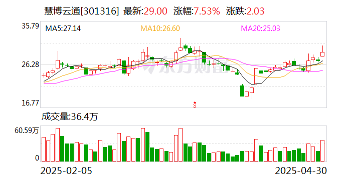 5月5日晚间,慧博云通(301316)发布筹划发行股份及支付现金购买资产并募集配套资金事项公告。公司股票自5月6日(星期二)开市起停牌,并预计不超过10个交易日将申请股票复牌。