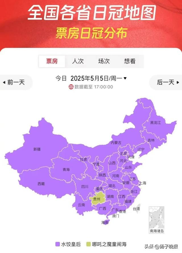这个五一假期,11部影片集中上映,《哪吒2》凭借超高口碑与观影黏性保持竞争力。假期第二天,《哪吒2》票房实现逆跌,单日票房超1795万元,以6.3%的排片占比贡献10.2%的票房占比,上座率高达11%。假期五天,《哪吒2》在贵州更是强势领跑。