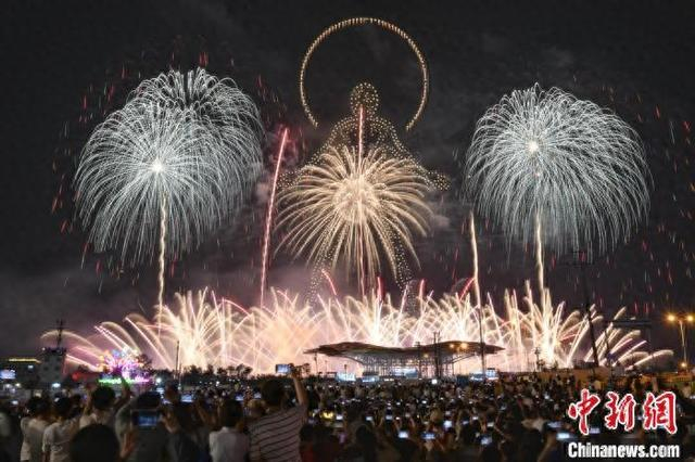 5月3日,“焰遇浏阳河·烟花星球奇幻夜”烟花秀在湖南浏阳上演。烟花秀以五大行星为线索展现多场景表演,千架无人机与烟火配合,带领现场观众感受烟花中的梦幻星河。记者 杨华峰 摄