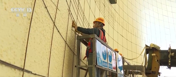 通过仓内的镜头可以看到仓内空间非常宽敞,比一个篮球场的面积还要大不少。整个仓内无梁无柱,空间利用率更高,上部巨大的穹顶非常宏伟。投入使用后,粮食通过传送皮带从穹顶上的入口处均匀的落入仓内。在外膜充气成型后,后期整个施工过程都将在膜内进行。施工过程机械化程度高、安全环保,几乎不受环境和天气影响,施工周期大大缩短。施工人员正在绑扎钢筋,接下来还有混凝土层的施工,最终形成坚固的钢筋混凝土墙体,起到强力支撑的作用。
