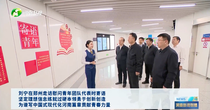 刘宁走访的其中一站,是郑州地铁会展中心站。在这里,他察看了青年主题地铁站“最美地铁口”、志愿服务站等,了解青年发展型城市建设工作,沿进站通道察看车站人流、安检并乘坐地铁。