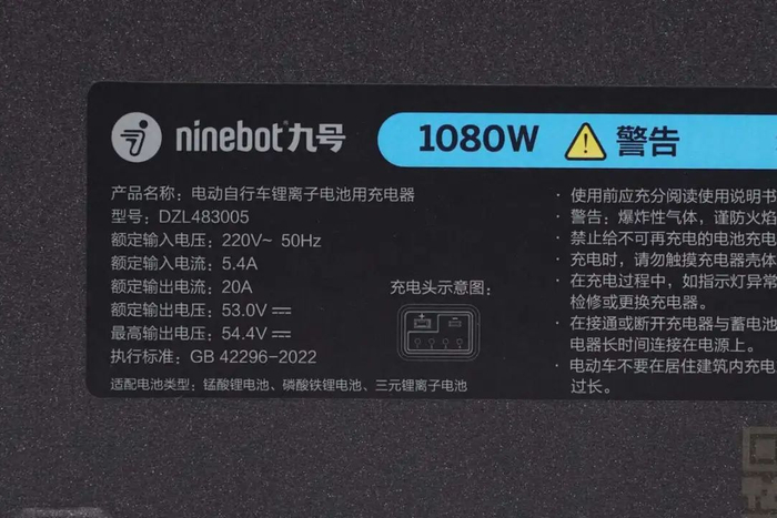 九号电动自行车1080W新国标充电器开箱