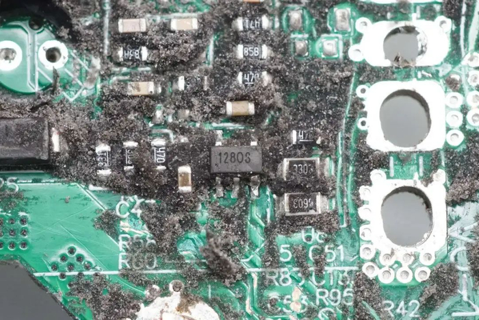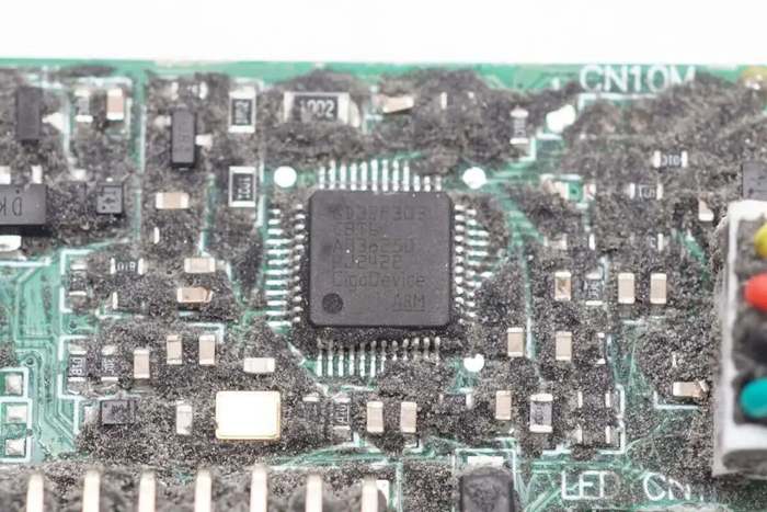 充电器内部还设有一路辅助电源,用于为控制小板供电。控制小板使用兆易创新GD32F303CBT6 MCU进行通信功能和充电控制,德州仪器SN75176A用于通信收发。充电器采用铝合金外壳,PCBA模块通过螺丝固定,并采用导热胶灌封填充,提升散热性能,并配有散热风扇,适合大功率快充场合。