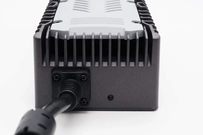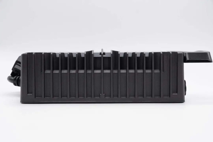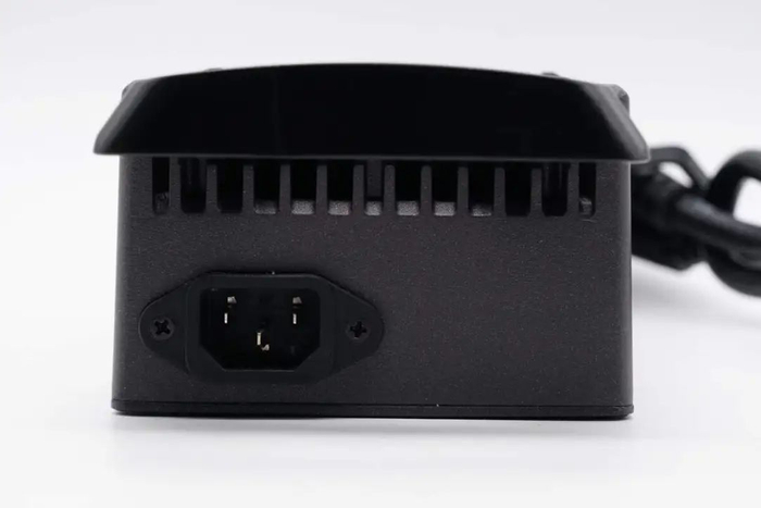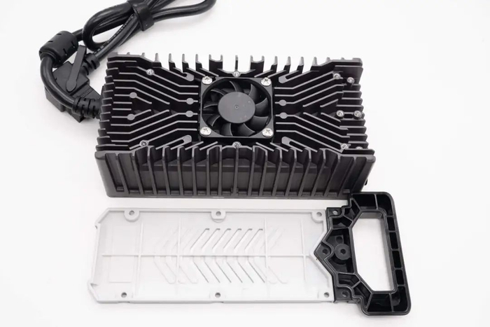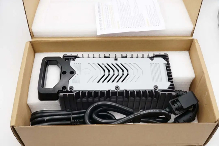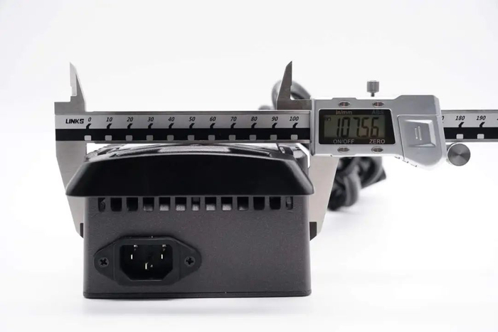 同时充电器还可以根据不同容量的电池,调节输出电流,从而满足不同种类,不同容量的电池使用。充电器整体采用铝合金外壳,设有散热格栅,并配有散热风扇降温。下面就带来九号电动自行车新国标充电器的拆解,一起看看内部的设计和用料。