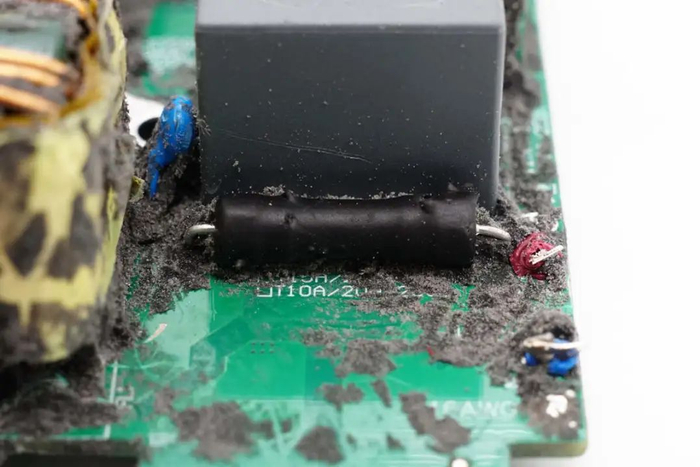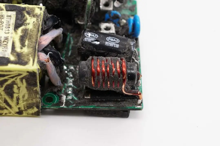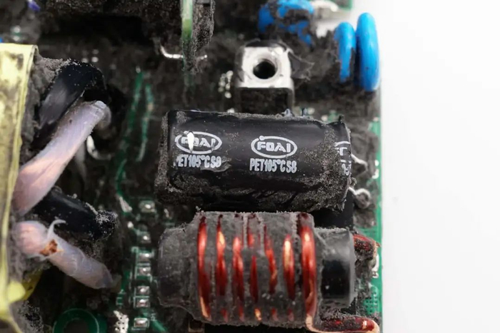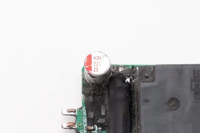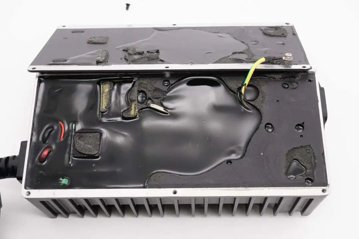 拧下固定螺丝,拆下充电器后盖,内部PCBA模块与外壳之间通过灌封胶填充,提升散热性能和耐候性。