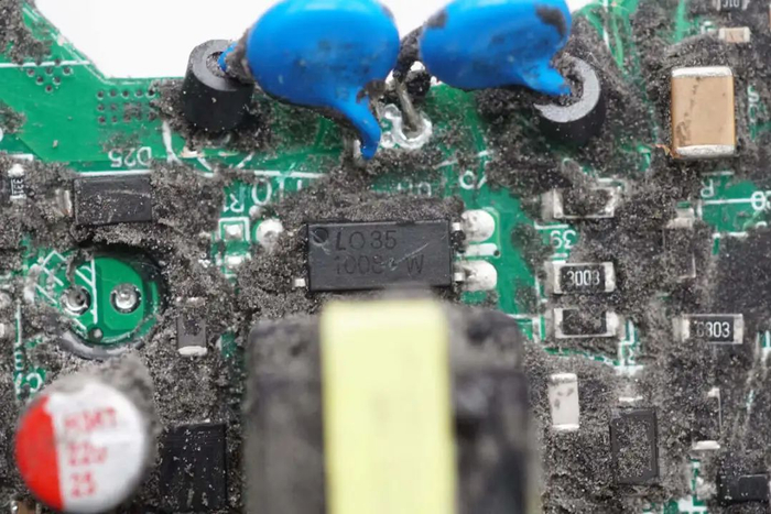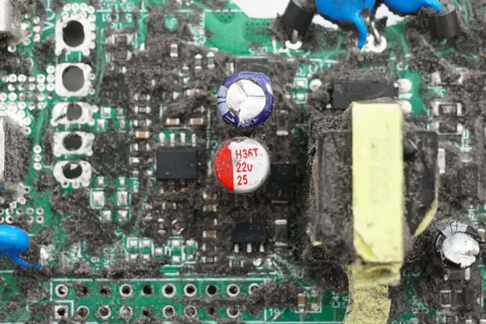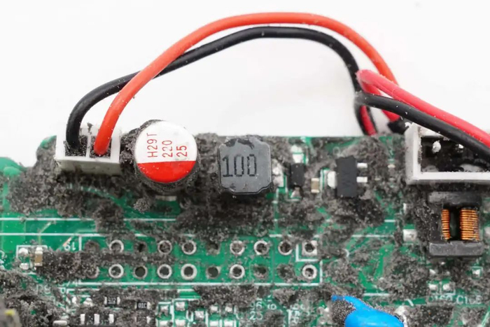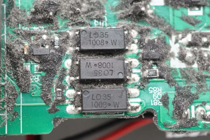整流输出经过NTC热敏电阻小板,小板焊接继电器和NTC热敏电阻,通过焊接连接。