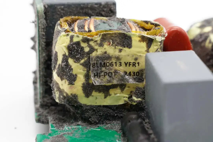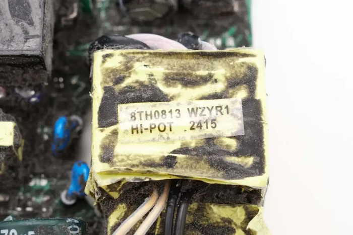 LLC变压器特写,磁芯缠绕胶带绝缘。