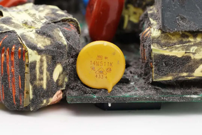 压敏电阻来自久尹,型号14N511K,用于吸收过压浪涌。