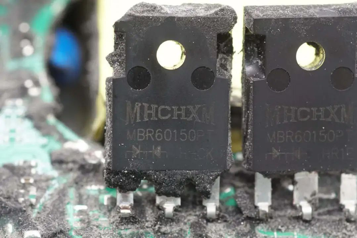 两颗输出整流二极管特写。