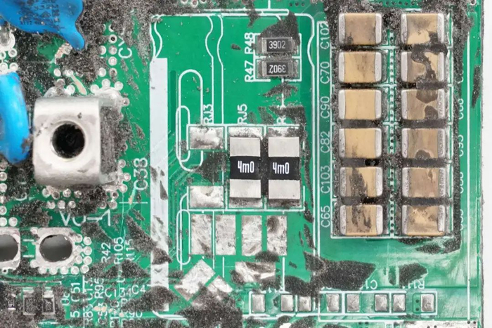 两颗4mΩ电阻并联,用于检测输出电流。