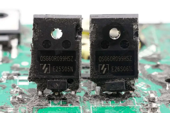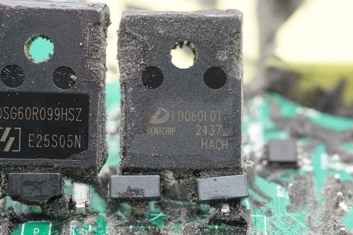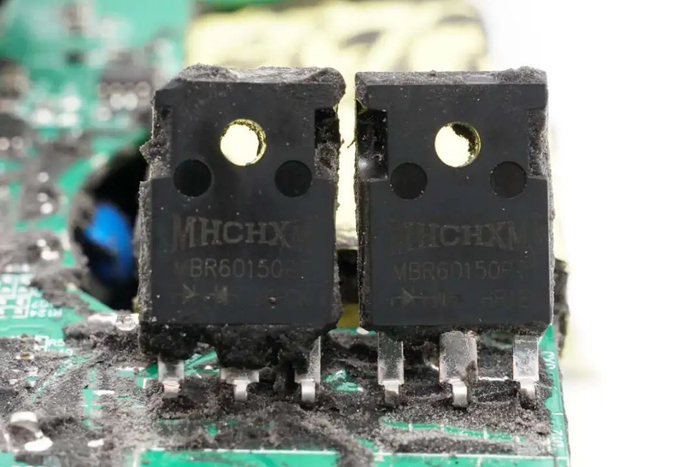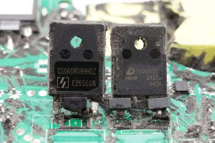 PFC开关管和PFC整流管特写。