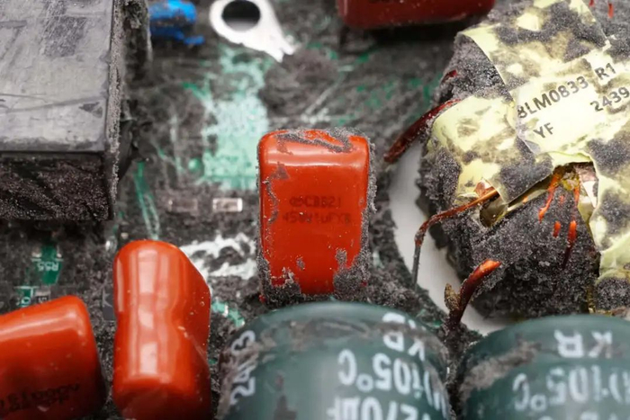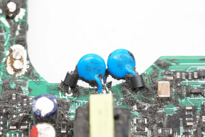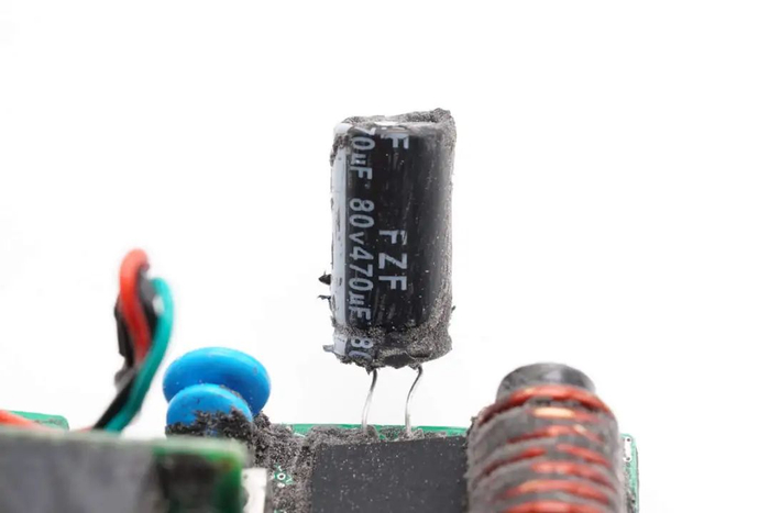 PCBA模块侧面设有压敏电阻,PFC升压电感,高压滤波电容和控制小板。