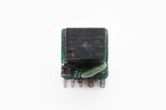 继电器来自松川,型号215HT-1AH-F-V,为密封型继电器,内置一组常开触点,触点容量为20A,线圈电压为12V。