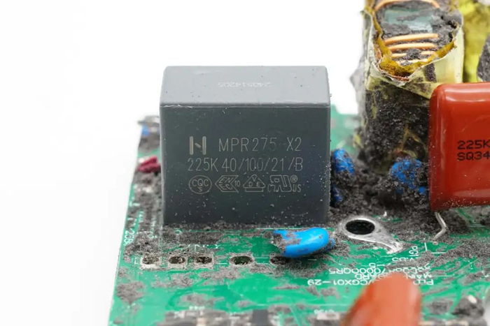 蓝色Y电容来自松田电子,容量为4700pF。