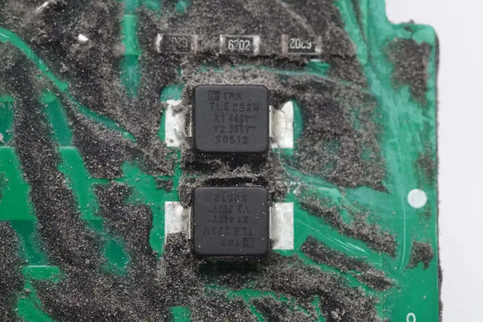 充电头网通过拆解了解到,九号新国标充电器采用PFC+LLC拓扑,使用德州仪器UCC28180 PFC控制器搭配东微OSG60R099HSZF开关管和瞻芯IV1D06010T2碳化硅二极管。LLC使用芯源半导体HR1001A控制器搭配两颗东微OSG60R099HSZF开关管。输出采用海矽美MBR60150PT肖特基二极管整流。