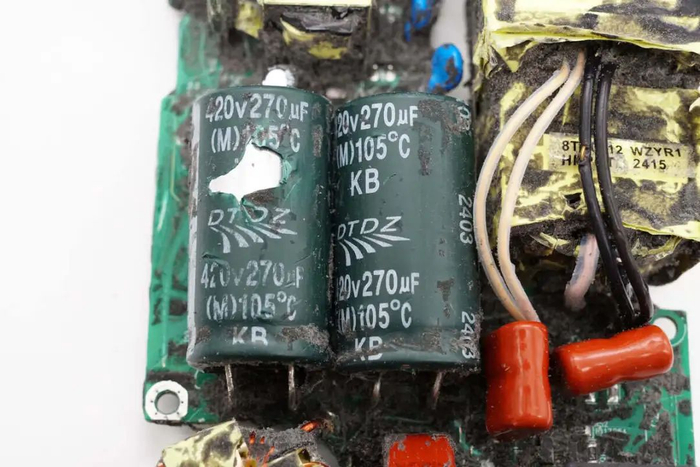 高压滤波电容来自大通电子,规格为420V270μF,两颗并联。