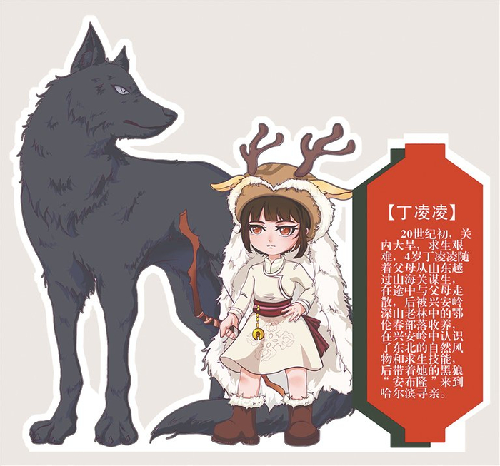 从构思到设计成功,面临诸多挑战。为解决IP形象设计中的文化背景缺失问题,王锐带领学生们实地考察哈尔滨市老道外中华巴洛克文化街区,拍摄大量现场图片、视频资料,深度挖掘鄂伦春族文化、闯关东文化、龙江地域文化、非遗文化等内涵,创作完善鄂伦春少女“丁凌凌”核心IP形象、背景故事,构建起完整的文化IP体系;借鉴成功案例,使人物角色性格、故事脉络更为丰富地呈现,打造极具龙江地域、风情特色的文创产品。
