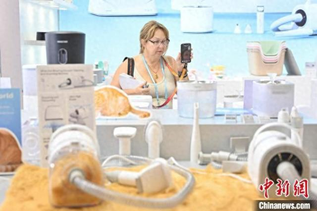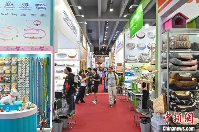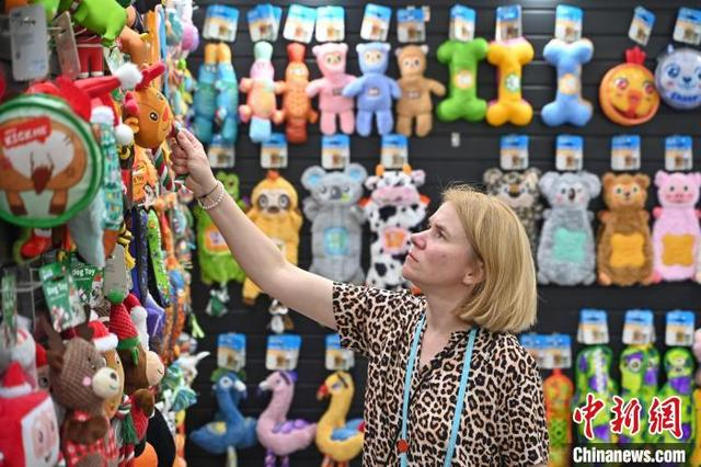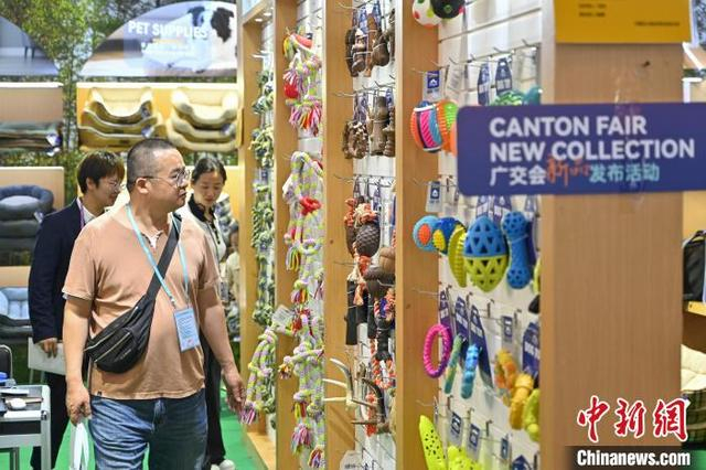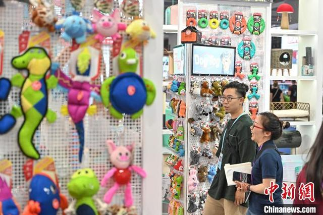 5月3日,广交会境外采购商在宠物用品展区挑选产品。正在广州举办的第137届中国进出口商品交易会(广交会)第三期展会上,从精致可爱的宠物玩具到智能化的自动喂食机,琳琅满目的宠物产品吸引来自世界各地的采购商询价下单订货。中新社记者 陈骥旻 摄