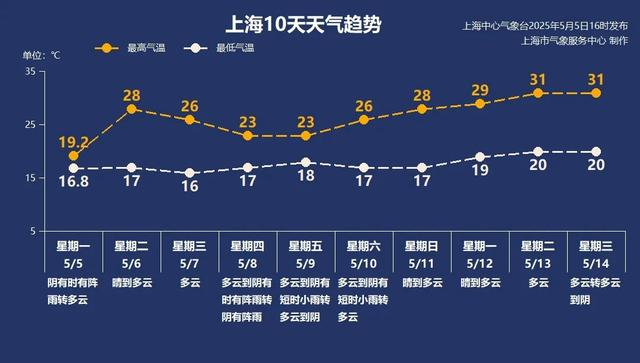 假期最后一天,上海小雨相伴,随着“五一”假期结束,阳光准时复工。5月6日长假后首个工作日,上海晴到多云,最高温爬升至28℃,比5日高了近10℃。