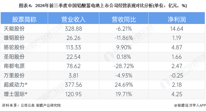 本文核心数据:铅酸蓄电池行业上市公司汇总;业绩对比;海外营收;研发费用等