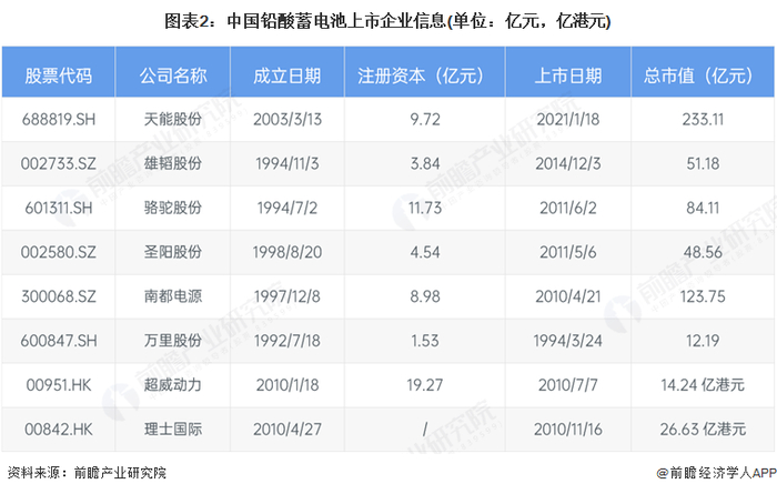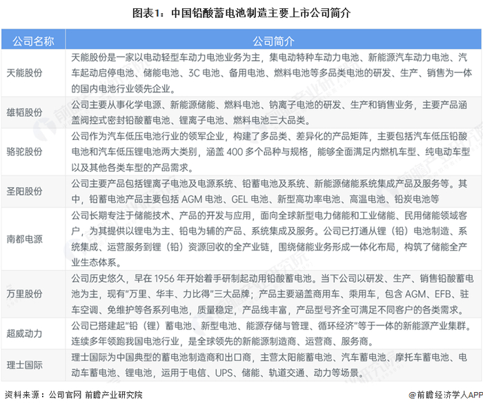 1、铅酸蓄电池行业上市公司汇总及基本信息