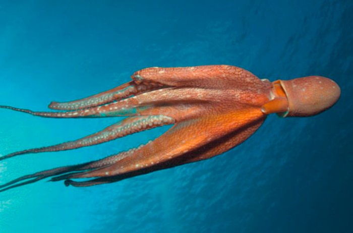 〓 太平洋巨型章鱼将自己展平,这最小化了阻力并提供了升力 / [5]