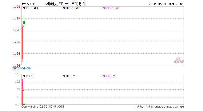 5月6日,机器人ETF基金(159213)开盘涨0.58%,报1.037元。机器人ETF基金(159213)重仓股方面,汇川技术开盘涨0.99%,科大讯飞涨0.62%,大华股份涨1.02%,中控技术涨0.76%,石头科技跌0.22%,双环传动涨0.92%,机器人涨1.44%,大族激光涨1.08%,巨轮智能涨1.62%,拓邦股份涨2.07%。