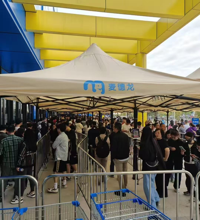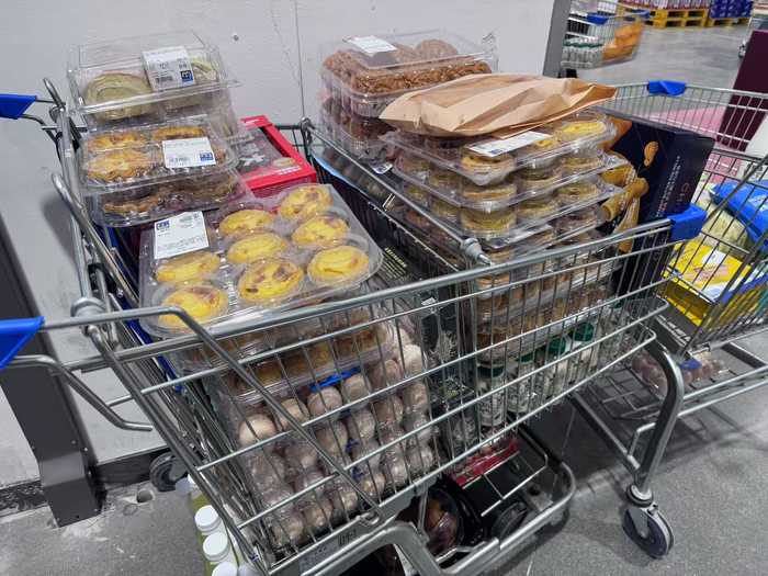 距离山姆3公里的麦德龙同样热闹非凡。四月底刚开业的它,在“五一”小长假迎来客流高峰,单日客流量均逼近5万人次。尽管商场将收银台增加到46个,仍难以缓解排队结账的长龙。自开业起,麦德龙店内的烘焙、水果、酒水、鲜肉、3R、乳制品等产品持续热销,稳居销售排名前列。网红产品更是火爆异常,麦臻选的鲜牛奶、麻薯、瑞士卷、榴莲千层、提拉米苏等常常刚上货架就已被抢购一空。