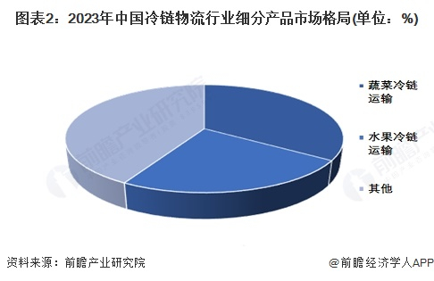 2024年10月,中国物流与采购联合会冷链物流专业委员会发布了《中国冷链物流发展报告(2024)》,深入剖析了2023年冷链物流行业的发展现状与趋势。各品类冷链流通率逐步提升,需求持续增长。根据数据显示,2023年蔬菜冷链运输市场和水果冷链运输市场是中国冷链物流行业最大的两个细分产品市场,占比分别达到34%和24%。
