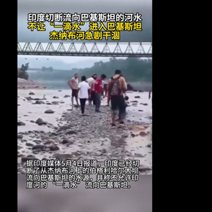 画面显示,由于《印度河用水条约》被暂停,上游供水被切断,杰纳布河急剧干涸。