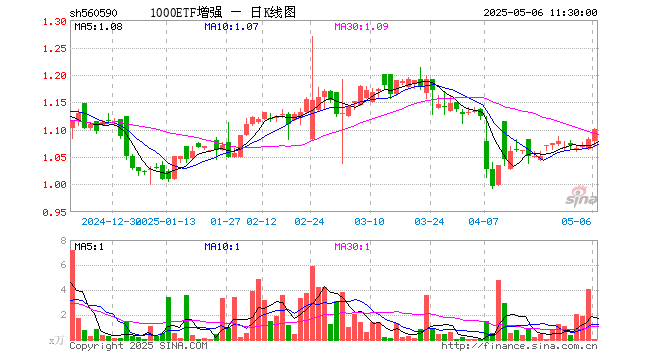 1000ETF增强(560590)涨1.66%,半日成交额5.90万元