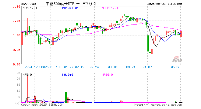中证500成长ETF(562340)涨1.40%,半日成交额6327.00元