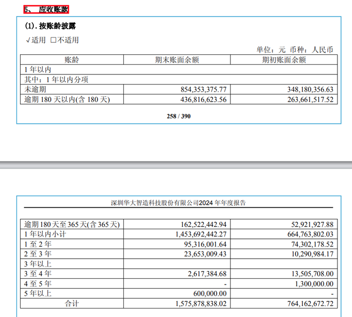 根据年报附注披露,华大智造2024年末账龄在1年以内且逾期180天以上的应收账款1.63亿元,应收账款的回收情况不甚理想。