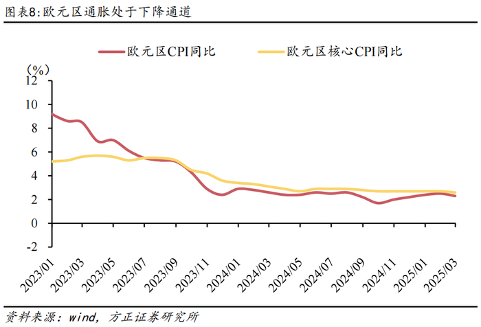 (5)2025年4月17日,欧洲央行宣布,将三大关键利率下调25个基点。存款利率下调至2.25%,边际贷款利率下调至2.65%,主要再融资利率下调至2.40%,这是该行自去年6月宣布降息以来第7次下调利率。