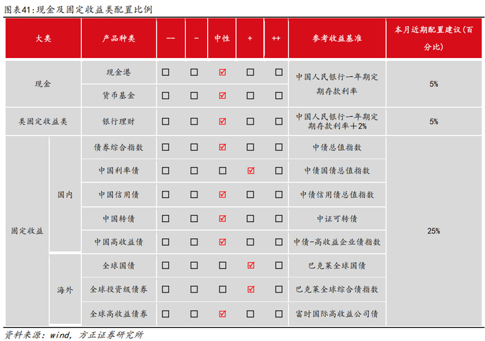 国内债券中长期观点:在经济内循环完全疏通前,债市调整时仍是配置时机。由于社会预期修复过程较为缓慢,信用大幅扩张的难度较大,缺资产的现象预计中长期持续,长债作为确定性资产配置需求始终存在,调整时仍是配置时机。建议坚持基本面逻辑,关注信贷、通胀、内需、地产的企稳信号的同时,关注外部冲击事件与货币政策落地带来的债市机会。