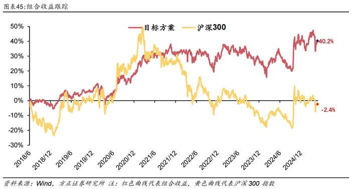 我们通过选取各大指数对标各类资产,来构建该大类资产组合,对该组合的跟踪从2018年5月份开始,每月的大类资产调整后运行结果,采用定期再平衡的调整方式,每月进行一次模拟仓位调整。本月跟踪的为2025年3月底调仓后的整体效果,4月目标组合小幅跑赢基准,长期来看,目标组合波动更小,收益稳定,资产配置的复合收益效果更为有效。
