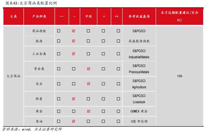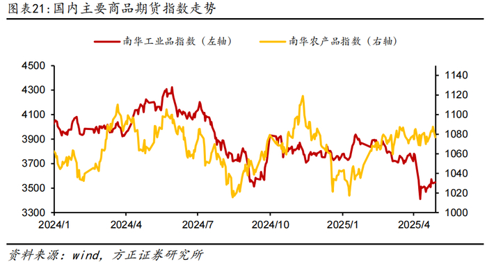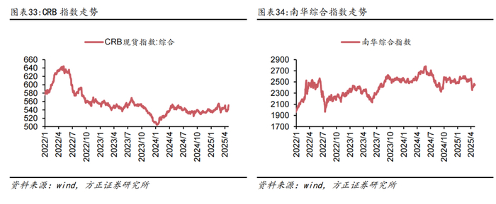 大宗商品短期观点:需求端受全球经济增速放缓拖累,整体投资回报率预期降低。具体来看:(1)原油方面:OPEC+6月预期进一步加快增产节奏,同时在经济及石油需求增长预期转弱的背景下,油价短线反弹可能承压;(2)工业金属方面:铜加工费重回负值,冶炼减产压力增加,消费旺季铜价上涨有空间,资源国政策变化对供给造成扰动,关注集中度较高的金属品种;(3)贵金属方面:受美元信用风险影响,黄金避险价值长期凸显,短期受关税谈判不确定性和美国化债进程影响波动可能加剧;(4)农产品方面:受贸易政策、库存波动与天气不确定性等影响,近期全球经济增长放缓对价格产生压制,但不同细分品种存在较大差异。