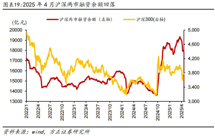 截至2025年4月26日,沪深300指数当月下跌2.6%,沪深两市融资余额录得1.79万亿元,较上月末减少1159亿元。市场风险偏好有所回落,投资者对短期市场走势趋于谨慎,降低杠杆操作。