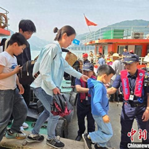 5月1日,长江海事部门工作人员在长江重庆段保障群众水上出行安全。长江海事局供图