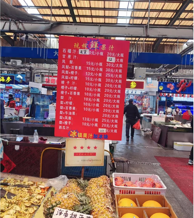 农贸市场里面也是应有尽有,径直看到的就是水果区,一大早就有现榨果汁喝的快乐谁懂哇。