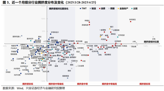 拥挤度看,当前多数科技细分方向拥挤度已回落至底部,而部分红利和内需资产当前拥挤度已经上升至高位;